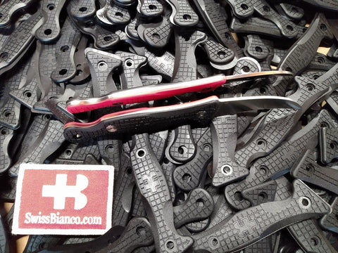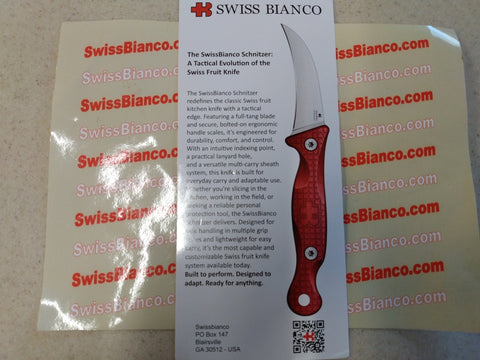 swissbianco schnitzer tactical fruit knife. full tang vg10 stainless steel, oal 185mm. cnc machined ergonomic g10 scales. kydex sheath sold separate, different single colors and pattern.